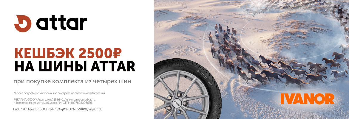 Срок действия по 31.12.2025 включительно. Кешбэк 2500 ₽ в подарок за покупку шин Attar!