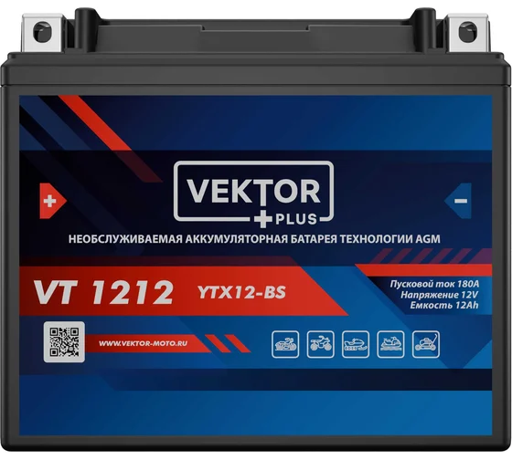 Аккумулятор мото VEKTOR PLUS VT 1212 AGM 12 А/ч R