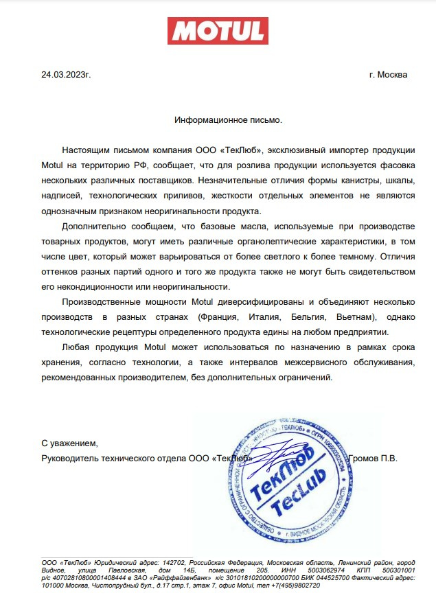 - Производитель Motul
