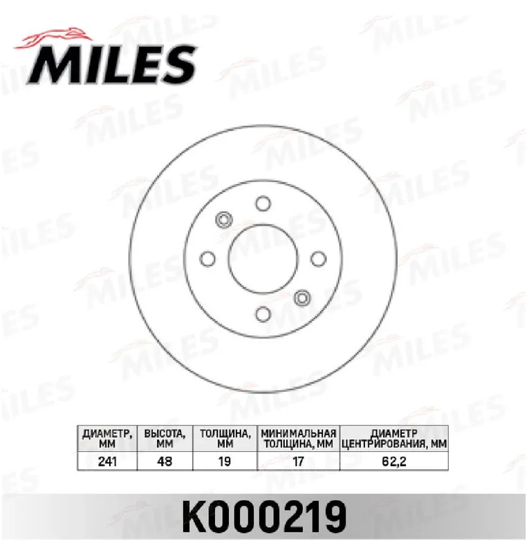 Диск тормозной перед Hyundai 51712-1C000 Miles K000219 Getz R13 02- без АБС D=241мм(DF6040)