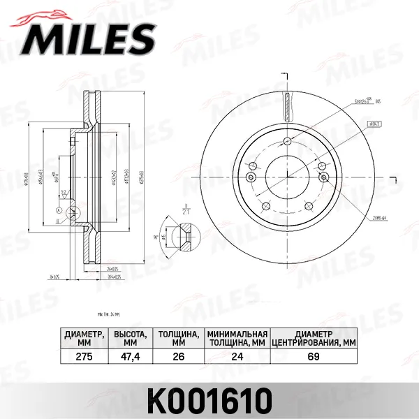 Диск тормозной перед Hyundai 51712-2H000 Miles K001610 Elantra/Avanta 06/05-11/04 D=275 (DF4922)