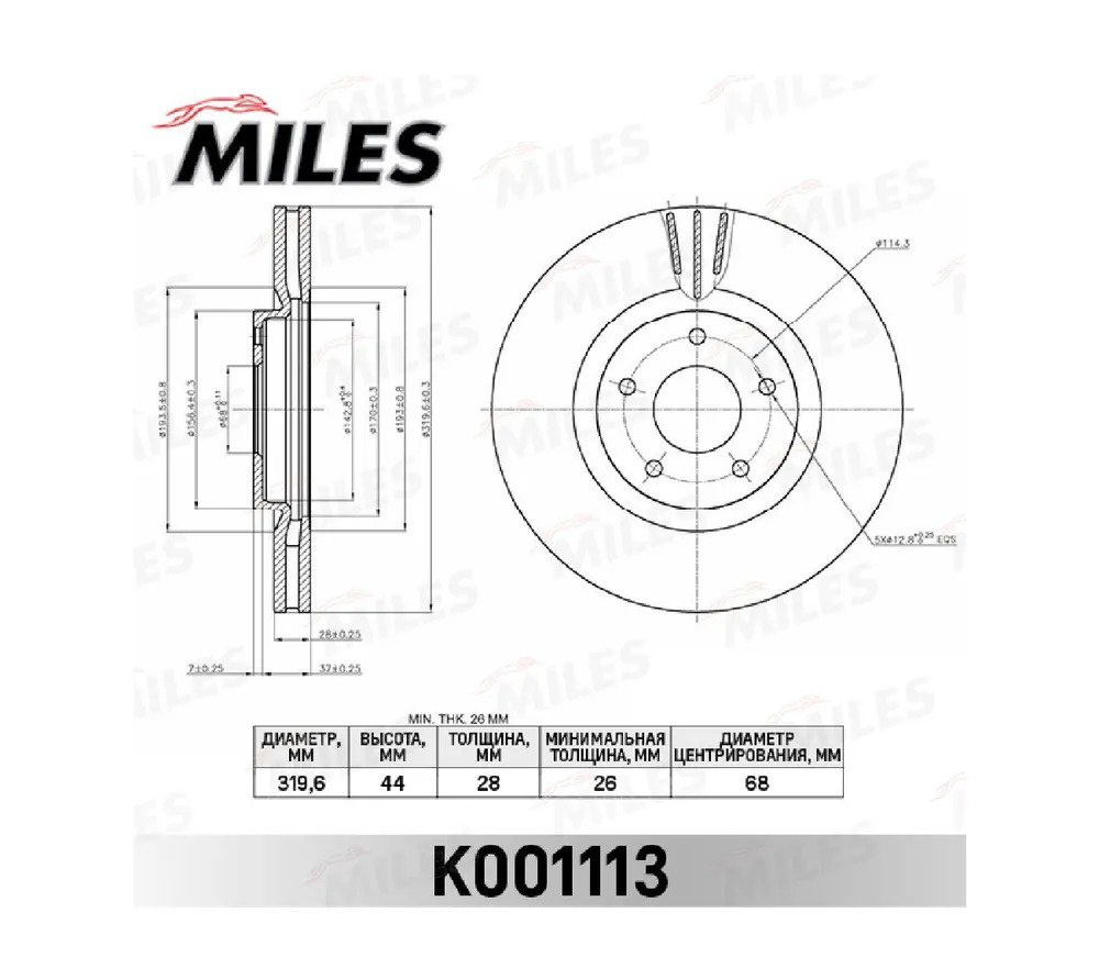 Диск тормозной перед Nissan 40206-JY01A Miles K001113 JJ10E Renault Koleos I D=320 (402069828R)