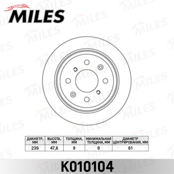 Диск тормозной зад Honda 42510-SS1-000 Miles K010104 GE# GD# Jazz II EG# EK# D=239