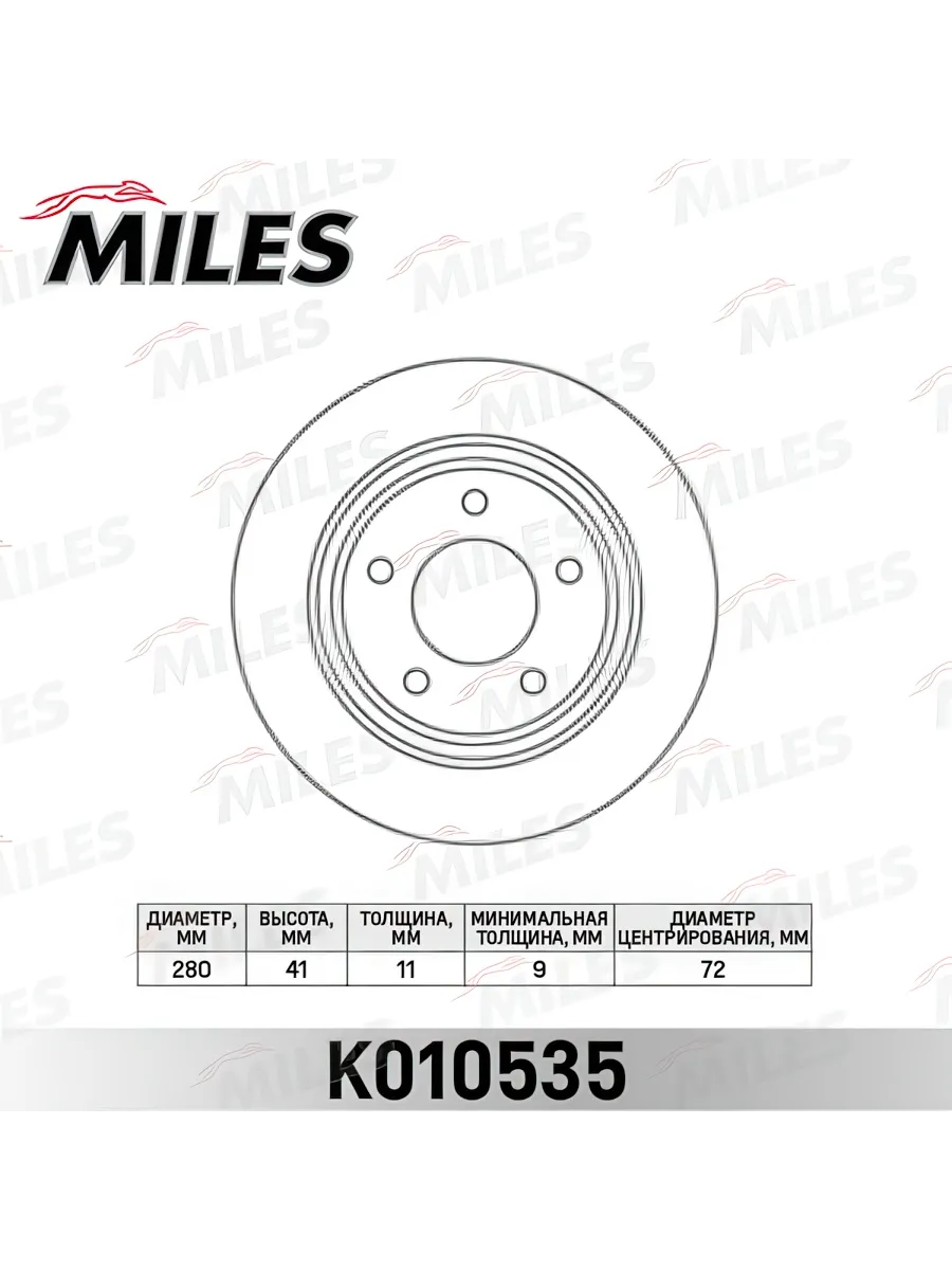 Диск тормозной задн Mazda C25Y-26-251C Miles K010535 BK# BL# Mazda 3 CR# Mazda 5 D=280