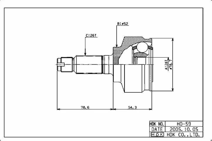 Шрус Honda 44305-SEL-T00L HDK HO-59 L15A GD6/8 Без ABS 28x52x26