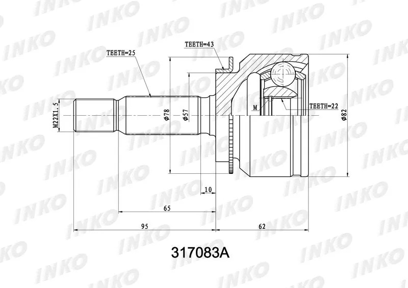 Шрус MMC MR580378 Inko 317083A 4G13/15 CS2A CS2W CQ1A CQ2A с ABS, 22/57/25