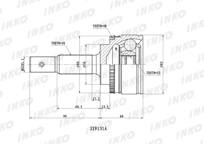 Шрус Toyota 43470-29635 Inko 329131A (TO-051) #ZZ-FE 1AZ-FE #T220 #E120 #T250 с ABS 23/56/26